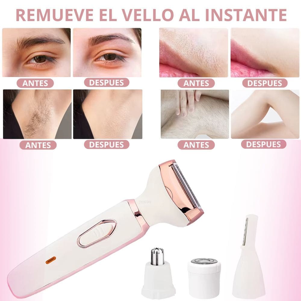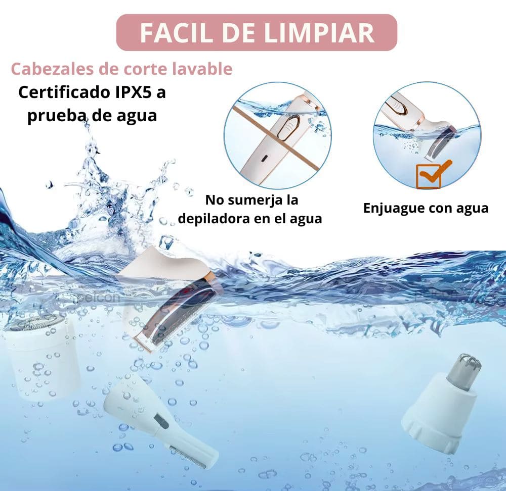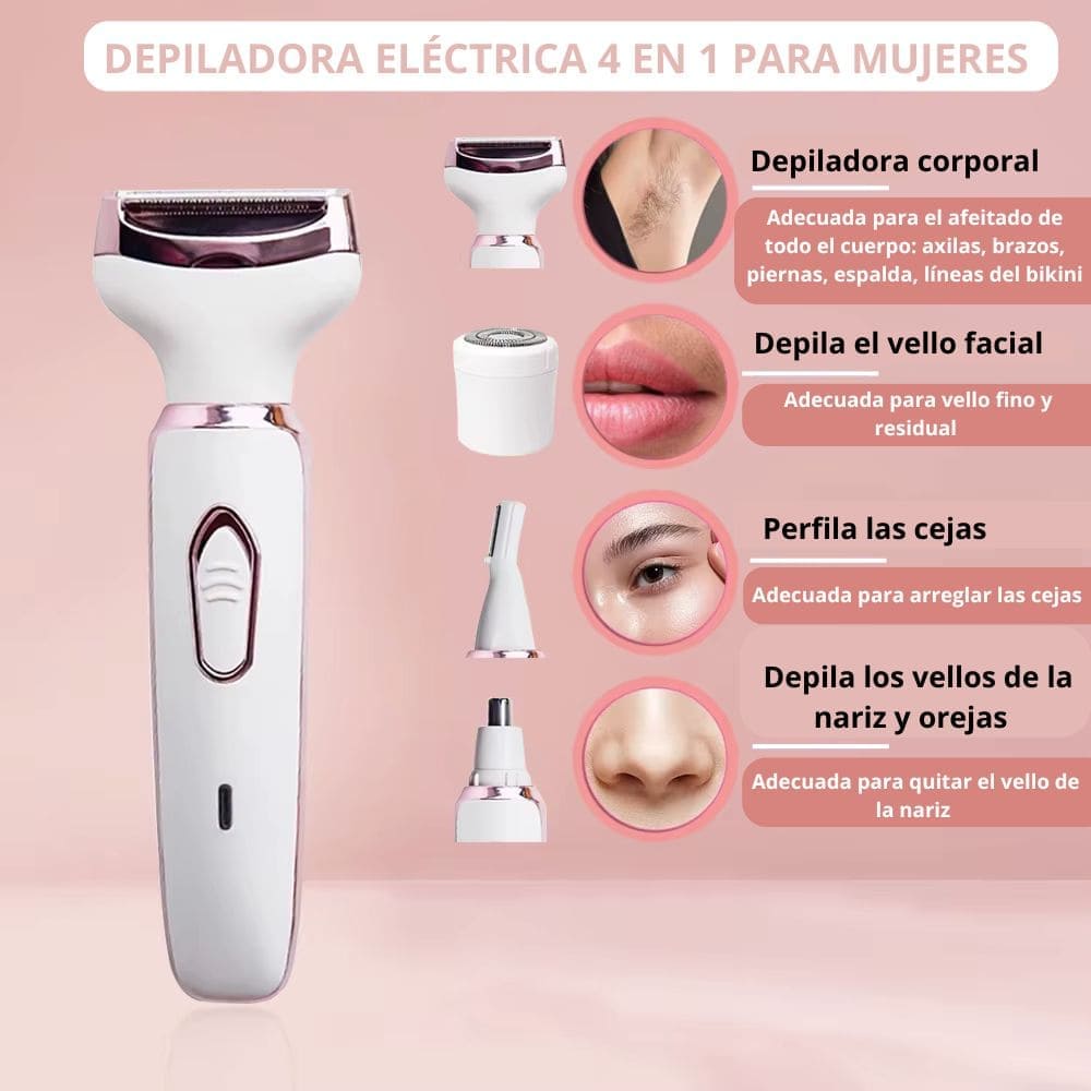Olvídate del ardor, la cera carísima o esas depiladoras que pellizcan horrible. Con nuestra Depiladora Recargable 4 en 1, tendrás una piel suave al instante, sin sufrir y sin depender de salones